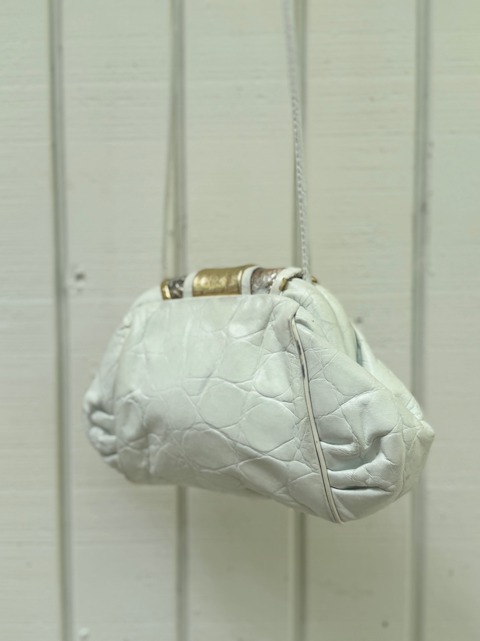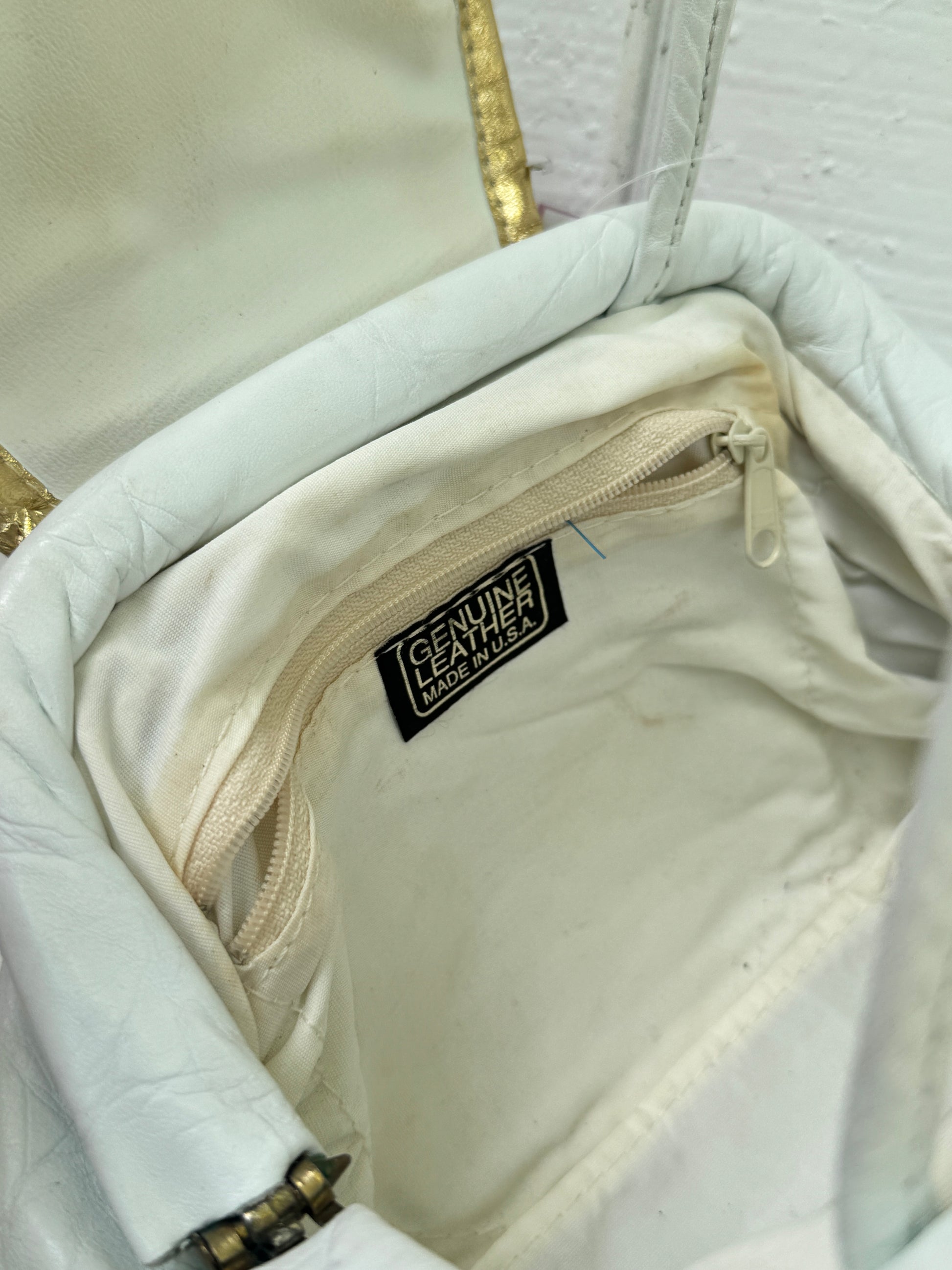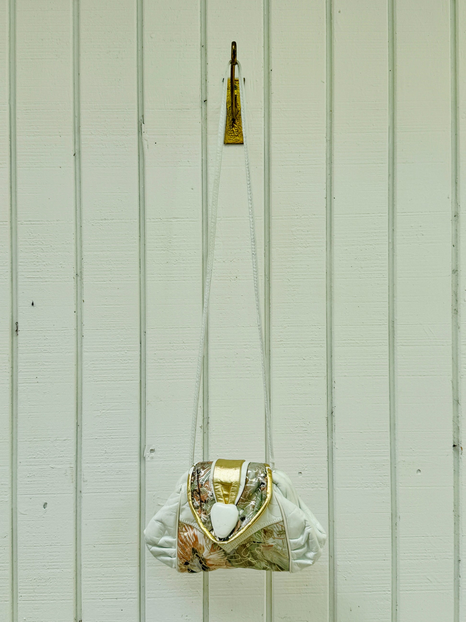 Vintage 1980s metallic foil stamped leather patchwork purse.